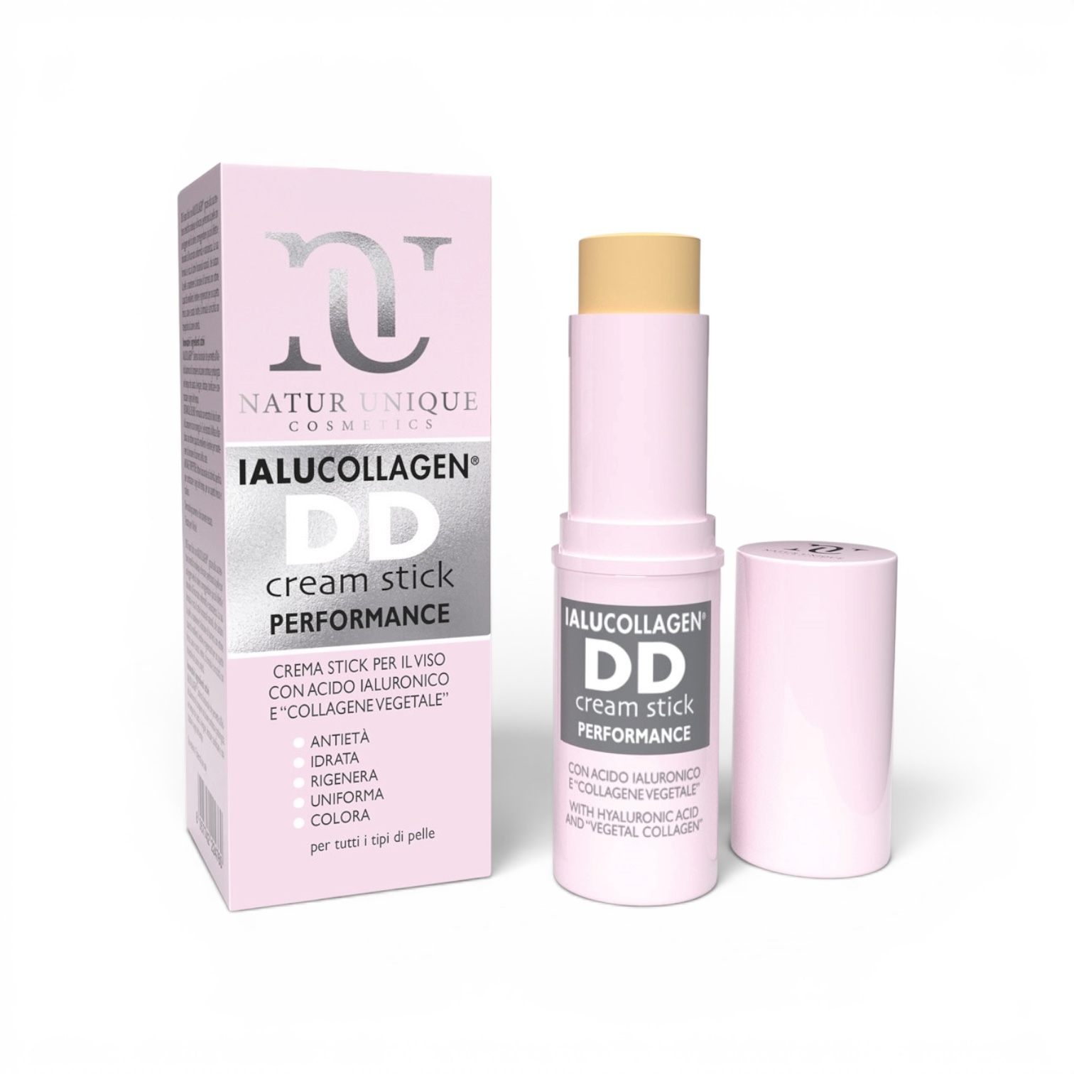 La DD Cream Stick Performance Ialucollagen® di Natur Unique è un innovativo trattamento viso multifunzione che unisce le proprietà del make-up a quelle della skincare in un unico gesto pratico e veloce. Grazie alla sua texture cremosa e fondente, scorre facilmente sulla pelle, garantendo un’applicazione uniforme e una copertura modulabile che corregge imperfezioni, discromie e segni di stanchezza, donando un incarnato naturale, levigato e luminoso. La formula avanzata è arricchita con Acido Ialuronico e Collagene Vegetale, ingredienti noti per la loro capacità di mantenere la pelle idratata, elastica e compatta. Il complesso Ialucollagen® favorisce un’azione idratante prolungata nel tempo, aiutando a migliorare visibilmente la qualità della pelle giorno dopo giorno. Perfetta per chi desidera un prodotto pratico da portare sempre con sé, questa DD Cream in stick rappresenta la soluzione ideale per un make-up naturale e un trattamento anti-age quotidiano. Attivi e tecnologia