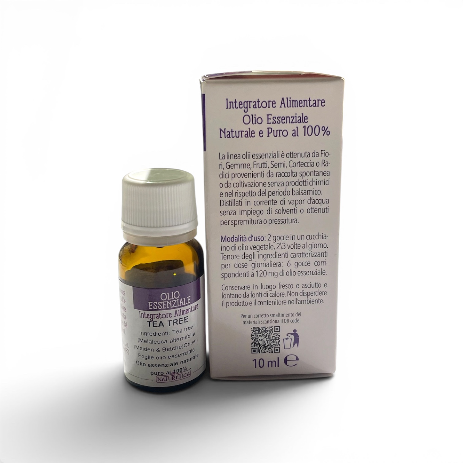 L’Olio Essenziale di Tea Tree Naturetica è un prodotto 100% puro e naturale, ottenuto dalle foglie di Melaleuca alternifolia tramite distillazione in corrente di vapore, senza l’utilizzo di solventi chimici. Questo olio essenziale è indicato sia come integratore alimentare sia per uso aromaterapico e cosmetico. Grazie alle sue naturali proprietà purificanti, è tradizionalmente utilizzato per favorire il benessere dell’organismo e supportare l’equilibrio delle vie respiratorie e della pelle. Le materie prime selezionate provengono da raccolta spontanea o coltivazioni controllate, nel rispetto del ciclo naturale della pianta e senza trattamenti chimici. Caratteristiche: